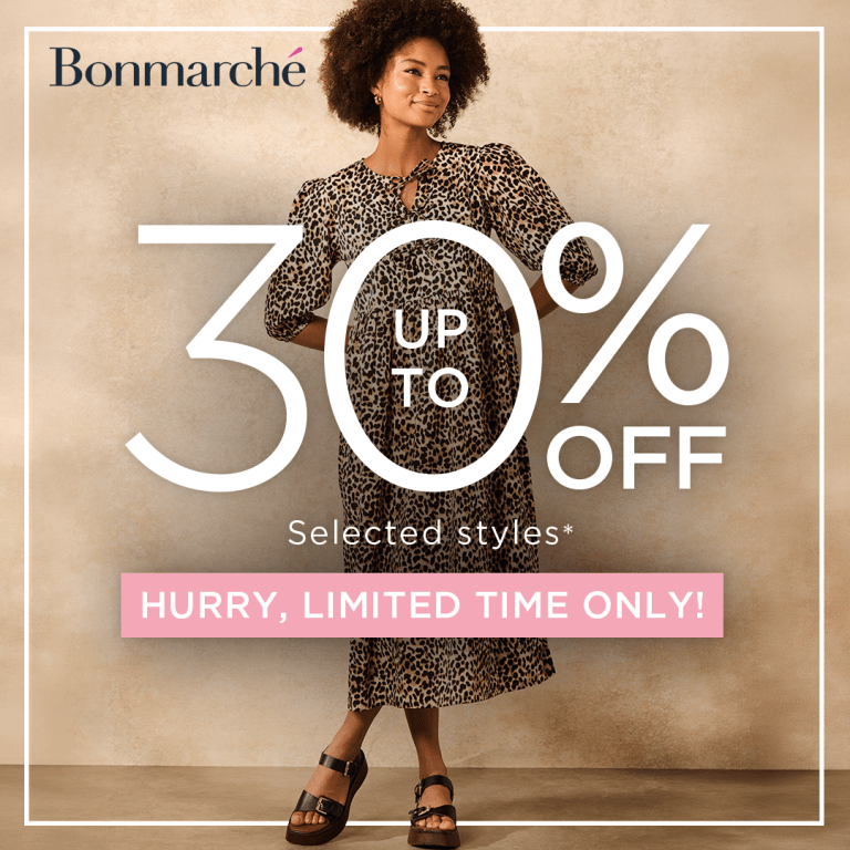 Enjoy up to 30% off everything in-store and online at Bonmarché. Hurry, limited time only! *T&Cs apply, please visit the Bonmarché website for more information. 😍🎉